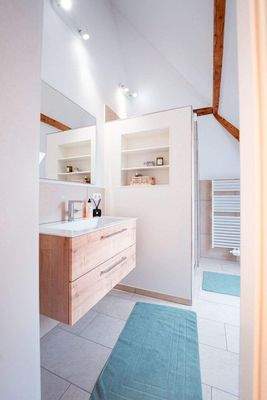 - Hochwertige Innenausstattung mit Eichendielen, Echtholzdielen Naturfliesen und zeitlosen Bodenfliesen