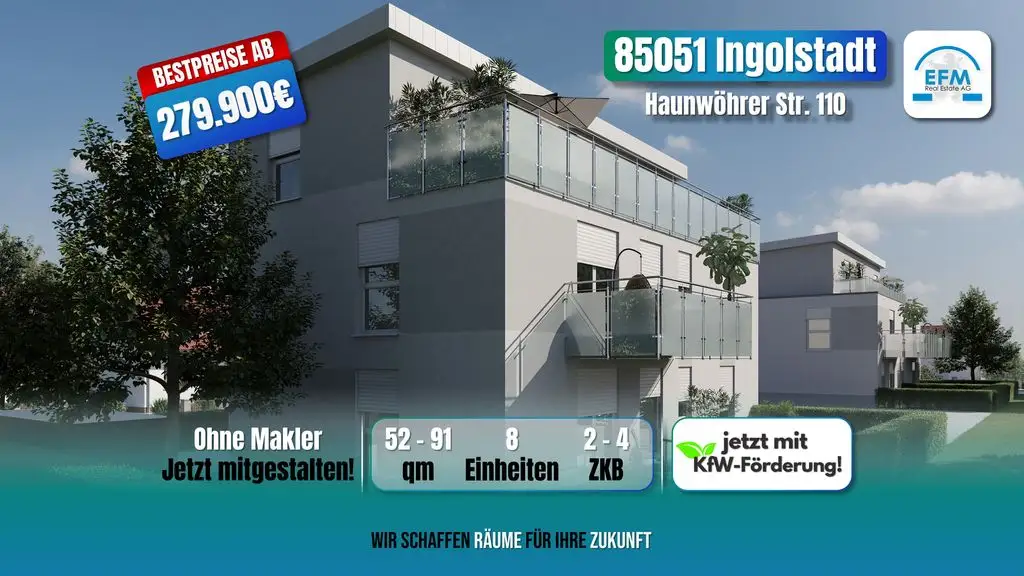 Was Sie erwartet: • Direktkauf einer Eigentumswohnung mit individuellen Ausstattungsmöglichkeiten - Kaufpreis inklusiv 5% Nachlass - KfW55-Förderung: 100.000€ zu vergünstigten Konditionen - 5% degressive Abschreibung möglich