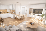 check Balkon, Personenaufzug, Zentralheizung, Neubaustandard, Neubau, Personenaufzug, Fliesenboden, Parkettboden, Fußbodenheizung, projektiert, Kunststofffenster